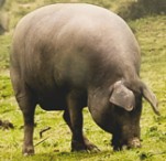 Der Schinken vom iberischen schwarzen Schwein wird gerne auch Pata Negra genannt (pata negra = schwarze Pfote bzw. Klaue). Diese Schweineart, auch Ibérico Schwein genannt, stammt traditionell von der iberischen Halbinsel und zählt mit seinen charakteristischen Merkmalen zu einer besonderen Schweinerasse ( .. mehr dazu hier).